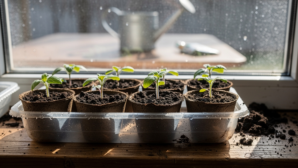 Пикировка — в фазе двух настоящих листьев (не семядольных). Обычно через 10–14 дней после всходов. Заглубляйте до семядолей — на стебле ниже грунта образуются дополнительные корни.